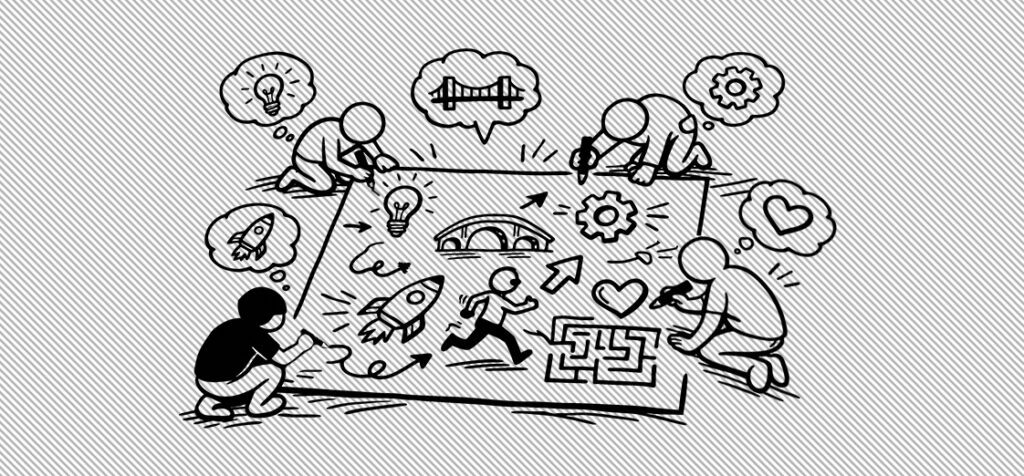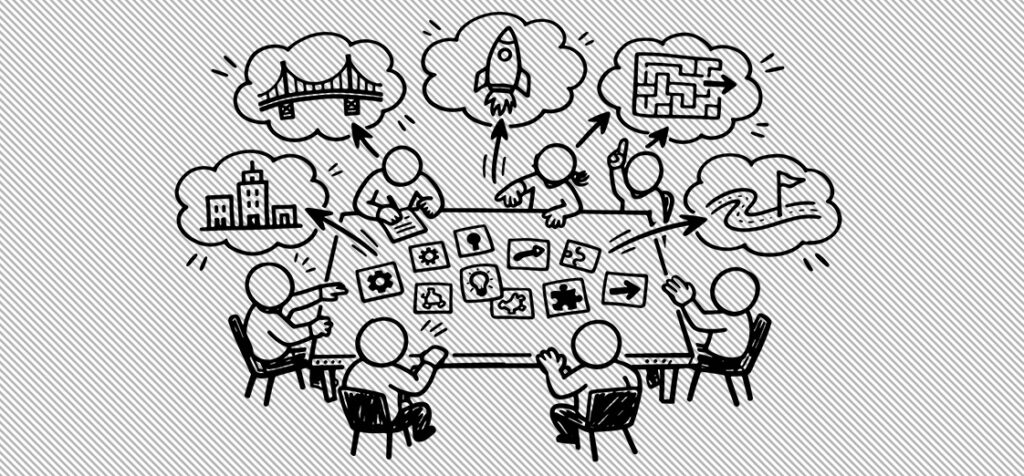 Il s’agit de faire jaillir les idées, même les plus inattendues, et de les relier entre elles pour concevoir des solutions pertinentes et désirables.