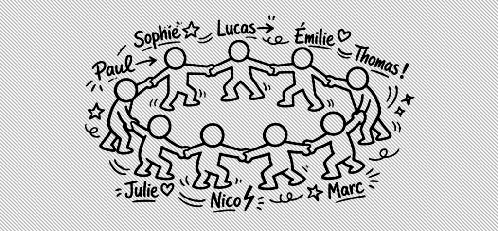 Ce thème a pour vocation de faciliter l’entrée en matière des ateliers, de poser un cadre bienveillant et de créer de la cohésion dans les groupes. Un bon ice breaker permet à chacun de se sentir à l’aise, de se connecter aux autres, et d’ouvrir la porte à la créativité et à la coopération.